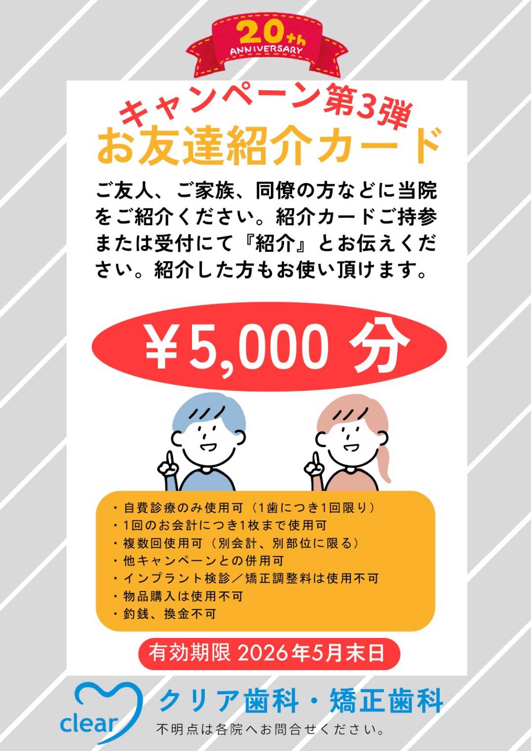 ご友人、ご家族、同僚の方などを当院にご紹介いただくと、ご紹介者様とご紹介を受けた方どちらも自費診療が5,000円割引となります。