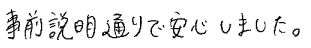 事前説明通りで安心しました。