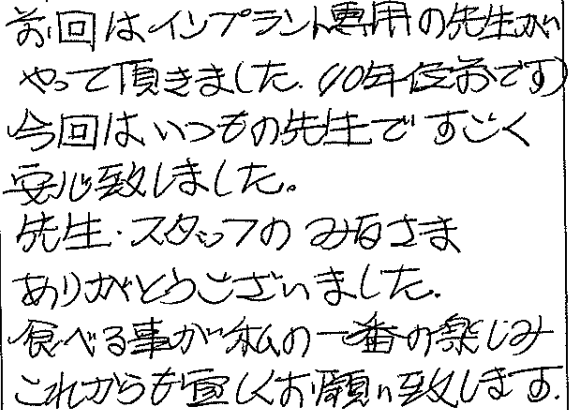 73歳女性 インプラント治療の患者様の声