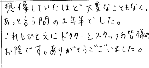 これもひとえにドクターとスタッフの皆様のお陰です。