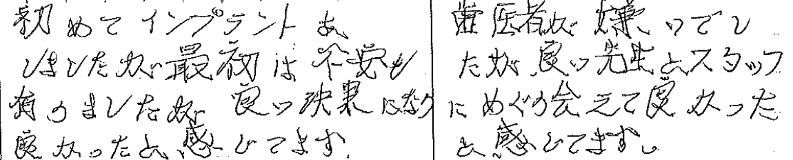 歯医者が嫌いでしたが良い先生とスタッフにめぐり会えて良かったと感じてます。